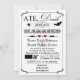 This vintage poster style "Ate, Drank and Got Married" post-wedding Halloween reception typography black and white chalkboard LOOK wedding invitation has a variety of scary looking fonts and scrolls on it, along with a pair of red hearts, a spider on a spider web, a black bat, and pointing hands. It has a funny new take on the "Eat, Drink and Be Married" trend that is perfect for the young hipster couple, the gothic couple, or the chic couple wanting a truly original Halloween wedding invitation that will be remembered by all their guests. It is shown here on basic paper. It is easily customised with your own information. There is some customisable text that you can edit the way you require. ALSO, please note that everything will print as it appears on your monitor. Zazzle will not edit anything for typos or mis-alignment etc., and I will not see it once you have ordered it. If you need help with your wording, please email me BEFORE you order. If there are any other items you need to make your event extra special, please email your request to niteowlstudio@gmail.com.