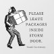 Let the delivery person know where to leave your packages with this practical design and add touch of vintage charm to your entryway with this stylish window cling! Featuring a classic illustration of a vintage postman holding a package and text in a nostalgic old typewriter font, this cling is both functional and decorative. Perfect for guiding delivery drivers, it ensures your packages are placed safely and exactly where you want them. Easy to apply and remove, this cling is designed to fit any door or window, blending timeless design with modern convenience. Ideal for anyone who appreciates vintage aesthetics and practical solutions.