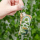 A keychain with a seasonal St. Patrick's Day image. Faded grunge style paper. A green pot of gold with coins