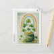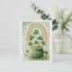 A postcard with a seasonal St. Patrick's Day image. Faded grunge style paper. A green pot of gold with coins