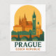 Retro/ vintage design emphasizing Prague’s historic skyline