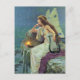This vintage image is a pretty fairy with long hair sitting on a cliff by the ocean holding her harp and candle. See my store for other products with this design.