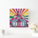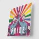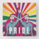 Vintage style propaganda square wall clock featuring two men wearing blue shirts holding a pink flag. Behind them is a rainbow sunburst design. The word PRIDE is highlighted at the bottom in white bold text. The perfect addition to show your vintage pride everyday!