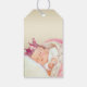 Girls vintage baby shower gift tags with adorable sleeping princess baby girl wrapped in soft pink blankets wearing a pretty pink crown and pearl bracelet on a light gold background. You can add the text of your choice to personalise, or you can remove all sample text. These sweet vintage princess baby shower tags are great for baby shower favour tags and gifts.