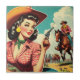 Vintage Pulp Cowgirl Illustration Tile