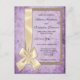 This charming, vintage-inspired purple wedding postcard invite features a rustic theme of aged purple paper and a faux wooden frame, with a pretty satin ribbon and bow adorning the left side of the frame.