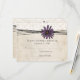 This vintage old fashioned floral wedding invitation response cardfeatures whimsical customisable text with a violet or lavender purple daisy flower image and faded white lace against an aged parchment paper. Goes great for a Spring wedding, Summer wedding, Fall and Autumn wedding, garden wedding, outdoor wedding, backyard wedding, and bridal shower and wedding shower invitations. Matching products available in my shop!
