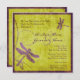 Invitation features purple and green colours with beautiful flourishes and purple dragonflies surrounding fully customisable text. Invitation has been given a vintage effect for an extra special touch. RSVP information area available on invite - so no need for additional RSVP's!