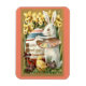 Adorable, vintage picture of a rabbit painting an Easter egg, with chick and flowers, is featured on this Easter magnet. With message, "Easter Greetings", this cute and colourful magnet makes a great decoration for Easter or give as a gift!