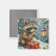 Vintage Raccoon Opening Christmas Gift Box Art Magnet