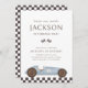 Celebrate your fast and furious one year old with this race car themed birthday invitation!