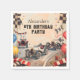 A nostalgic race car design featuring vintage toy cars, checkered flags, and colorful balloons in a playful retro palette. This classic illustration captures the excitement of the racetrack with a mid-century charm — perfect for celebrating your little speedster’s big day with a fun, timeless aesthetic.