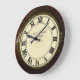 vintage railway station look clock. This clock is based on the wooden and ceramic clocks found all over the Uk and United States of America in the late 1800s and early 1900s. Customisable with your own choice of vintage railway (please avoid copyrighted names and companies to enable zazzle to print it). This clock appears to have a wood and brass surround with brass hinged glass and roman numeral clockface as a print effect. This retro clock would be the perfect gift for steam train lovers and railway enthusiasts.