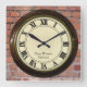 vintage railway station look clock. This clock is based on the wooden and ceramic clocks found all over the Uk and United States of America in the late 1800s and early 1900s. Customisable with your own choice of vintage railway (please avoid copyrighted names and companies to enable zazzle to print it). This clock appears to have a wood and brass surround with brass hinged glass and roman numeral clockface. This retro clock would be the perfect gift for steam train lovers and railway enthusiasts.