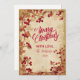 An ornate Victorian-style Christmas invitation featuring rich red poinsettias, swirling gold filigree, and festive holly accents. The aged parchment background enhances the nostalgic charm of the season, creating a timeless piece perfect for elegant holiday gatherings or Christmas dinner parties.