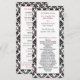 The design features a vintage black and white damask background with a decorative red border frame with an ornate floral flourish and is finished with elegant wording in black and red.