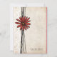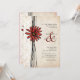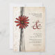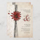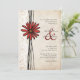 This vintage old fashioned wedding invitation features whimsical customisable text with a red daisy flower image and faded white lace against an aged parchment paper. Matching RSVP available in my shop!