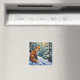 Vintage Red Fox and Chickadees Christmas Painting Magnet