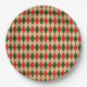 Vintage Red & Green Harlequin Pattern Paper Plate
