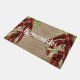 Vintage red pepper with some Spanish text " Bienvenidos " doormat with some nostalgic feel and burlap look background . Design by Alma Wad ,