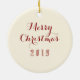Red roller skates vintage Christmas tree ornament. Merry Christmas text with year on the back over cream colour.