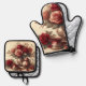 Vintage Red Rose Oven Mitt & Pot Holder Set