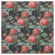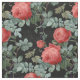 Vintage Red Roses and Leaves on Black Fabric