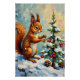 Vintage Red Squirrel Pine Tree Christmas Poster