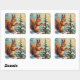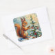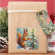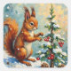 Vintage Red Squirrel Pine Tree Christmas Square Sticker