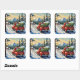 Vintage Red Truck Carrying Christmas Tree Square Sticker