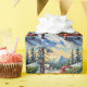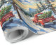 A timeless vintage Christmas illustration featuring a red pickup truck hauling a festive evergreen tree through snowy woods. A nostalgic holiday favorite.