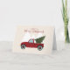 Whimsical illustration of an old fashion red truck carrying a Christmas tree. Personalise this design with your favourite family photo and a custom message.