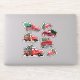 This set of retro truck holiday stickers features vintage red trucks with Christmas trees, gifts and yellow lab dogs in the back. Use for gift wrap,, mailing cards or craft projects. Designed by world renowned artist Tim Coffey.