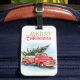 A charming painting of a rustic vintage red truck carrying a beautifully decorated Christmas tree. This artwork captures the warmth of the holiday season, evoking a joyful "Merry Christmas" spirit with its classic aesthetic and festive elements.