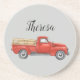 You'll love this simple personalised vintage red truck coaster with a grey background. Customised with your name in pretty typography.