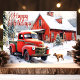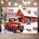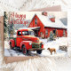 Vintage Red Truck Dog Winter Christmas Holiday Card