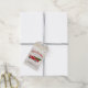 Rustic farmhouse style gift tag features a trendy vintage red truck with tree and your name. Background is white rustic farmhouse style weathered chippy wood. Back of tag is grey k and white buffalo plaid/checks. Vintage string lights hang overhead. Tag is part of a collection.