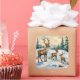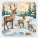 Vintage Reindeer Family Winter Meadow Painting Square Sticker