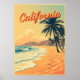 Experience the nostalgia of California's golden beaches with this vintage retro travel poster. Featuring iconic palm trees, ocean waves, and a classic beach vibe, this artwork brings coastal charm to any space. A must-have for beach lovers and retro art collectors.