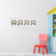 This fun poster features the front view of four vintage retro camper van buses in shades of green, pink, yellow and blue. A cute addition to a nursery.
