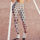 Cool retro cassette tape pattern leggings for women. Off white, aream coloured background. Great for lovers of classic and old school music.