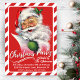 This mid-century retro vintage Christmas party invitation features a classic rendition of Santa Claus checking his list with a wink and a twinkle in his eye surrounded by a striped red and white candy cane border. Personalise by adding your event details and an option to leave an additional message on the back or leave the back blank.