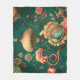 Vintage retro design floral green fleece blanket