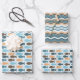A pattern of fish in retro colours with a coordinating sheet of zig zag lines. Great for boy birthday gifts or even for Father's Day.