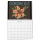 Fun Calendar with old Crate Labels. Ads for fruits and vegetables, oranges, peppers, tomatoes, pears, apples from old delivery crates. Add text to dates to remember special days in your life.