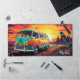 Brighten up your workspace with this vibrant and retro vintage hippie travel van desk mat! Featuring a colourful, psychedelic design of a classic van during the 70s against a stunning sunset backdrop, this large desk mat offers ample space for your keyboard, mouse, and other desk essentials. The vivid colours and intricate details create a cheerful and nostalgic atmosphere, making it perfect for fans of vintage aesthetics and road trip adventures. The high-quality material ensures durability and smooth mouse movement, providing both style and functionality. Customise it with your name or a personal message to make it uniquely yours.