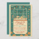 Designed in a nostalgic teal and cream palette with red festive accents, it features a charming Christmas village viewed through a frosty window — glowing lights, candy canes, and cookies framing a warm message of holiday cheer.