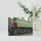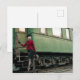 Vintage retro woman at train station postcard