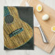 vintage rock guitar player artwork tea towel