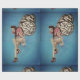This wrapping paper is illustrated with a vintage butterfly winged rockabilly fairy.
